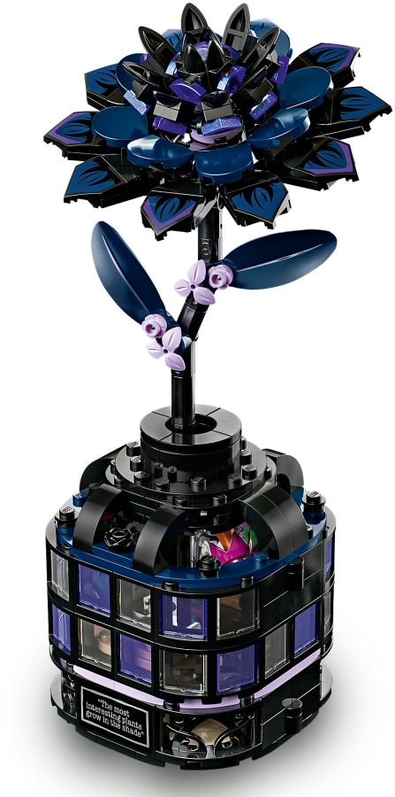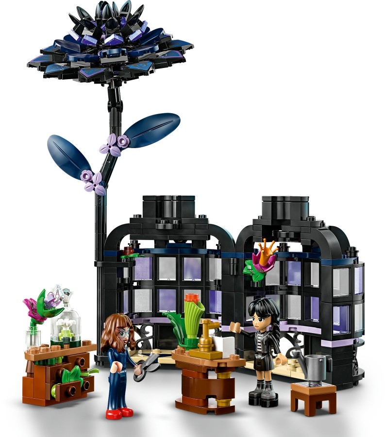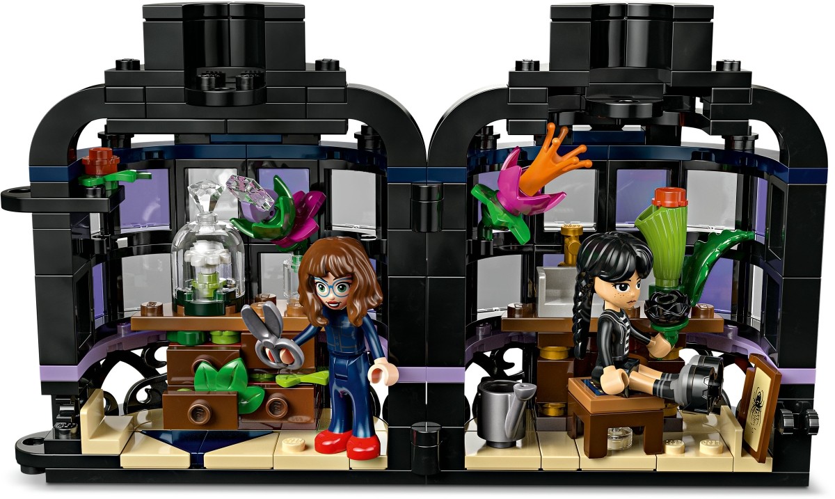 Ez a szobadekoráció tartalmaz egy növényt, egy fekete dáliát (levelekkel és világoslila rügyekkel) és egy mini üvegházra hasonlító vázát. Az építés végén a gyerekek eltávolíthatják a dáliát, hogy kinyissák a vázát, és felfedezzék a belsejében lévő osztálytermet, ahol kivehető asztalok, egy kisszék és további történetmesélést támogató kiegészítők találhatók. A gyerekek Wednesday és Marilyn Thornhill professzor bőrébe bújva játszhatják el a történeteket. Ez a készlet biztosan eleget tesz a gyerekek kalandok és misztériumok iránti rajongásának. A LEGO Builder alkalmazásban egy intuitív építési kaland vár a nagyobb gyerekekre és rajongókra, hiszen az alkalmazásban felnagyíthatják, és 3D-ben elforgathatják a modelleket, és követhetik a haladásukat.