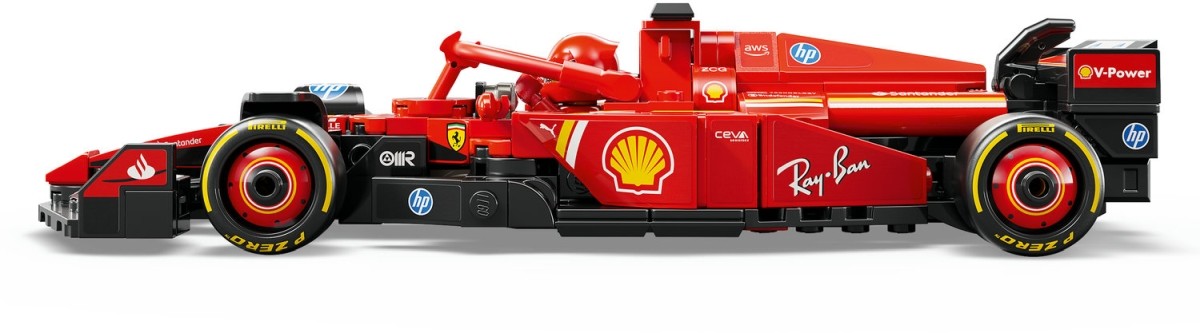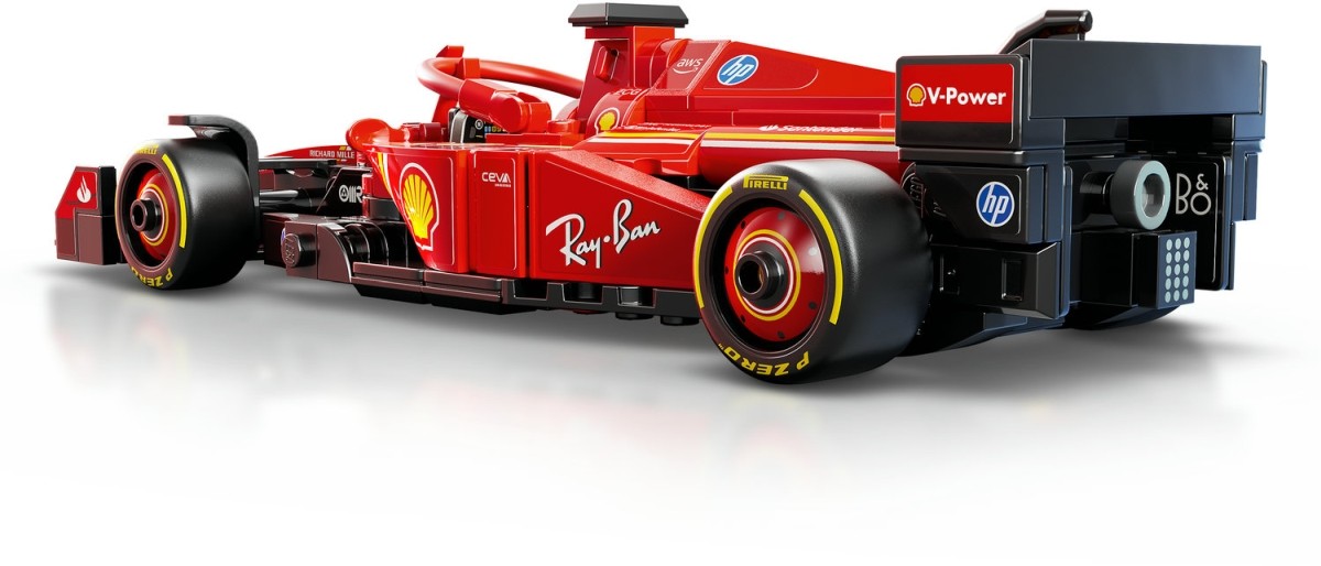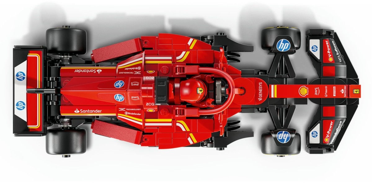 A játék Ferrari jármű tükrözi a Formula 1 2024-es évadában versenyző, eredeti versenyautó jellemzőit, így a gyerekek, a felnőttek és az autógyűjtők megépíthetik, kiállíthatják és versenyeztethetik is a modellt. A F1 autómodell nyitható fülkével (a glória bukókeret felemelésével), hátsó szárnnyal, kereszt-lengőkaros felfüggesztéssel, szponzormatricákkal és Pirelli feliratú, szélesebb hátsó gumiabroncsokkal van ellátva. A F1 versenyautóhoz egy pilóta minifigura is tartozik, aki Ferrari öltözéket és szárnyas sisakot visel, és akit a fülkébe ültethetsz a versenyek során. A szett összerakható a nyomtatott építési útmutató és a LEGO Builder app útmutatója alapján. Az alkalmazás téged és a gyermekedet is egy izgalmas építési kalandon kísér végig.