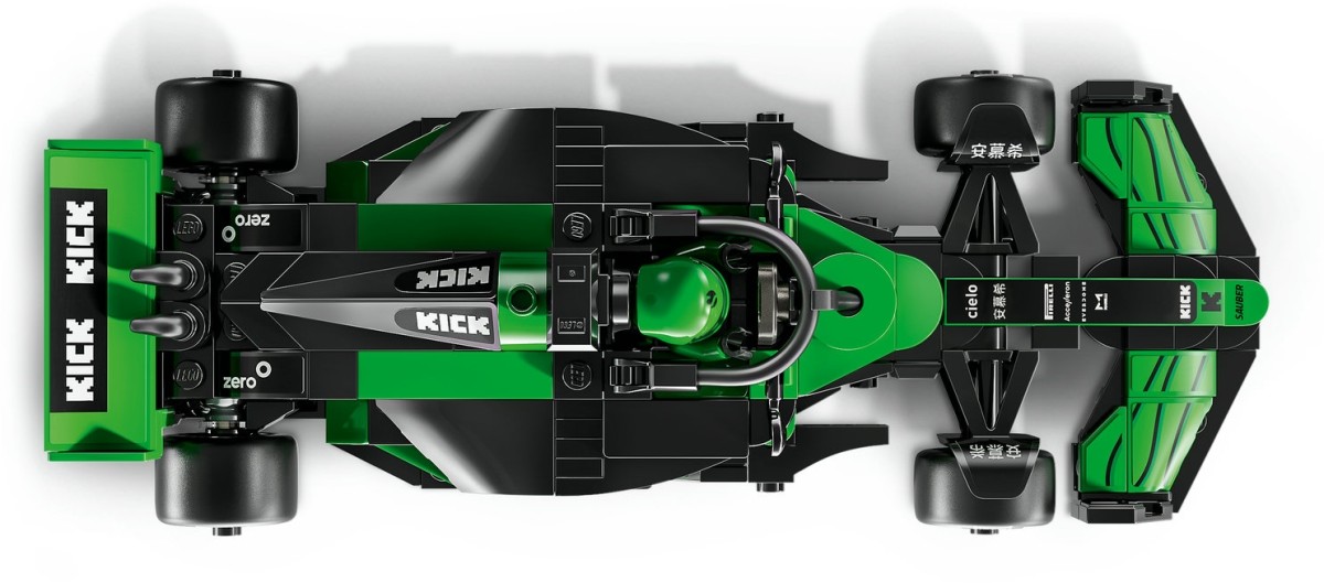 A gyerekeknek és felnőtt autógyűjtőknek készült, elegáns és sportos F1 versenyautón megjelennek a Formula 1 világbajnokság 2024-es évadában versenyző, valódi autó részletei. A F1 játék autó nyitható fülkével (a glória bukókeret felemelésével), hátsó szárnnyal, kereszt-lengőkaros felfüggesztéssel, szponzormatricákkal és Pirelli feliratú, szélesebb hátsó gumiabroncsokkal van ellátva. A megépíthető versenyautóhoz egy pilóta minifigura is tartozik, aki KICK Sauber F1 Team öltözéket és szárnyas sisakot visel, és akit a fülkébe is beültethetsz.