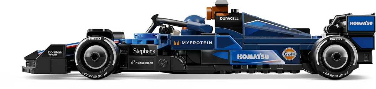 A gyerekek és felnőtt autógyűjtők megépíthetnek, kiállíthatnak és versenypályára küldhetnek egy F1 versenyautót, amely megeleveníti a Formula 1 2024-es évadában versenyző, eredeti versenyautó jellemzőit. A F1 autómodell nyitható fülkével (a glória bukókeret felemelésével), hátsó szárnnyal, kereszt-lengőkaros felfüggesztéssel, szponzormatricákkal és Pirelli feliratú, szélesebb hátsó gumiabroncsokkal van ellátva. A megépíthető, játék F1 autóhoz egy pilóta minifigura is tartozik, aki Williams Racing öltözéket és szárnyas sisakot visel, és akit a fülkébe is beültethetsz.